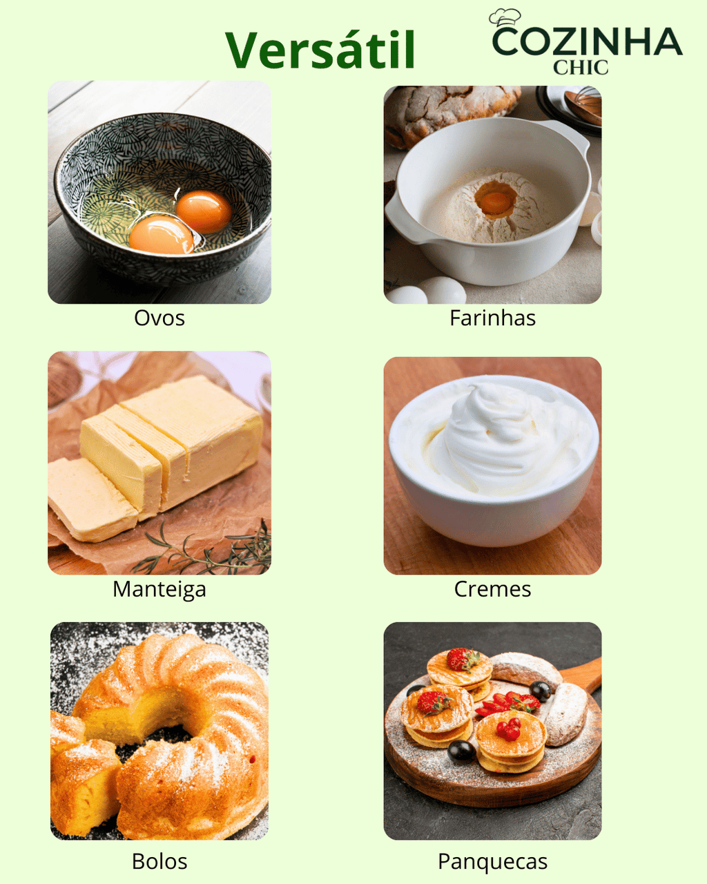 ✔ Super versátil – Perfeito para ovos, manteiga, cremes, bolos, panquecas e muito mais!